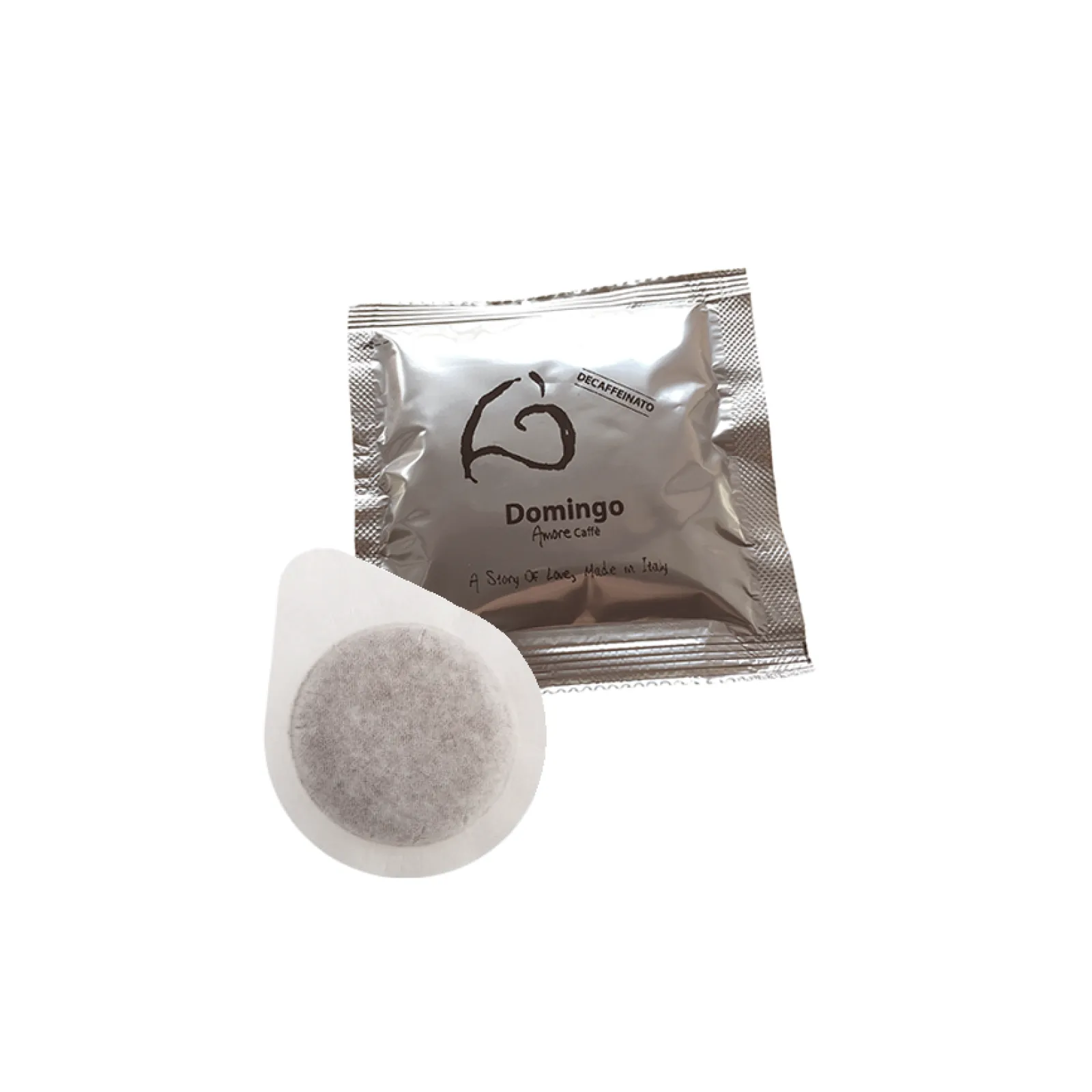 Kava be kofeino pagalvėlėmis „Domingo Amore Caffè“ DecaffeinatoSudėtis: aukščiausios kokybės rinktinė malta 100% Arabica be kofeino